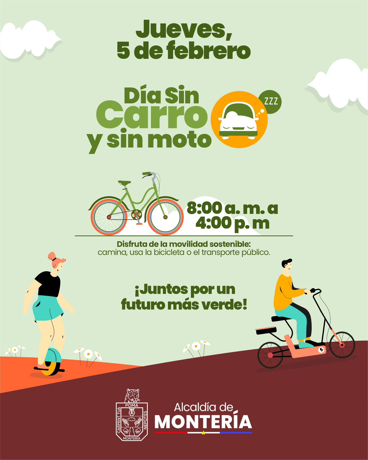 La Alcaldía de Montería ha confirmado que el próximo jueves 5 de febrero se llevará a cabo el Día Sin Carro y Sin Moto en el municipio, una iniciativa que forma parte del compromiso de la ciudad con la movilidad sostenible, la protección del medio ambiente y el cuidado de la salud pública. Esta jornada representa una oportunidad para que los monterianos reflexionen sobre sus hábitos de desplazamiento y experimenten una ciudad más amable, limpia y orientada al bienestar colectivo.